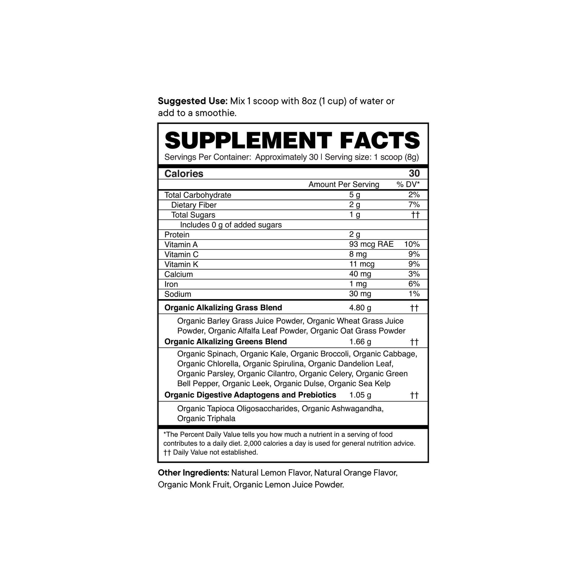 - Nuestro delicioso polvo verde orgánico certificado por el USDA está elaborado con más de 20 vegetales, pastos, hierbas, algas y superalimentos, lo que lo ayuda a obtener las nutritientes que necesita.