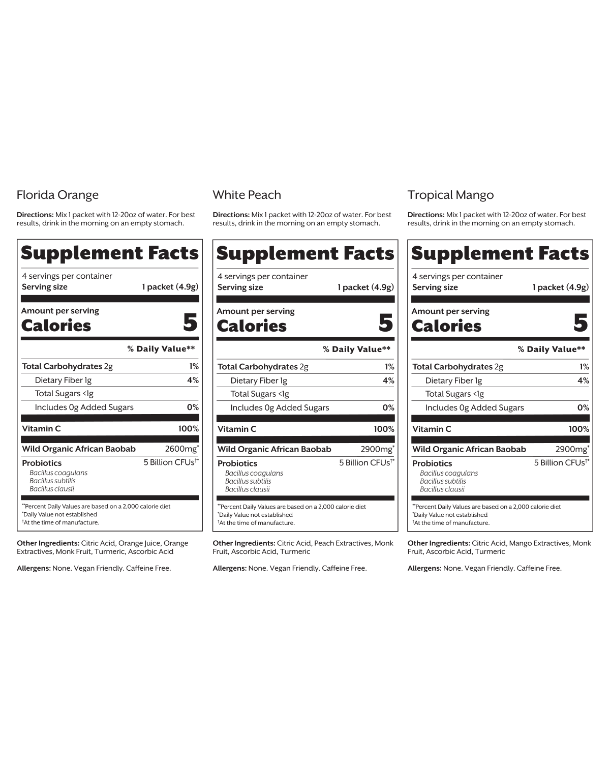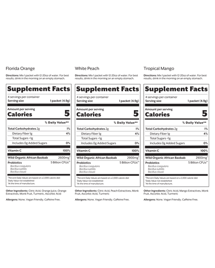 Paquete variado Debloat: naranja, melocotón y mango - 12 unidades